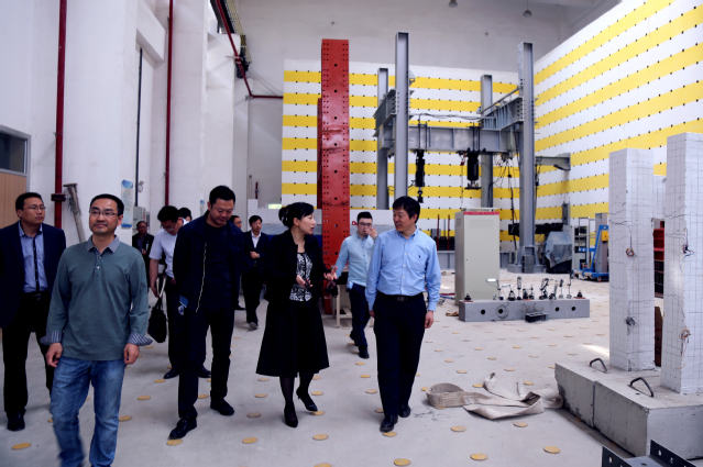 韩冰董事长一行在科研副院长马占国教授、力学与土木工程实验中心副主任李富民教授陪同下参观了深部岩土力学与地下工程国家重点实验室、力学与土木工程实验中心。